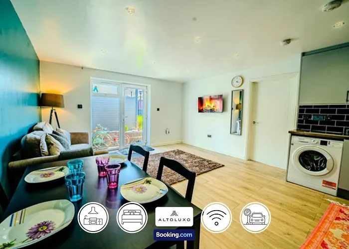Guests staying at Stylish & Comfy 1 Bedroom By Altoluxoexperience Short Lets & Serviced Accommodation With Free Wifi & Parking can take advantage of its self-catering amenities, such as a fully-fitted kitchen, and a dining area. The restaurant La Passione may perfectly be used for dining a walk from this accommodation.